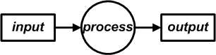 Fig. 2-1 Abstracted Computational Process 2.1.1 We can abstract out the basic idea of a computation as a conceptual process. Compare (Fig. 2-1) and (Fig. 1-3). This form of diagram is useful in characterizing processes as bridges between inputs and outputs at arbitrary levels of abstraction away from the level of the machine. Variations of this simple conceptualization go back to the 1950s, at least.